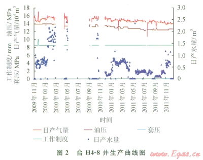 臺(tái)南氣田水平井出水統(tǒng)計(jì)分析結(jié)果顯示[8],凝析水有23口,占水平井總數(shù)的53%,平均單井日出水0.51m3;層內(nèi)水有l6口,占37%,平均單井日出水6.21m3;4口新井目前沒出水??傮w上單井日出水以小于3m3的井為主,占總井?dāng)?shù)的79.5%。