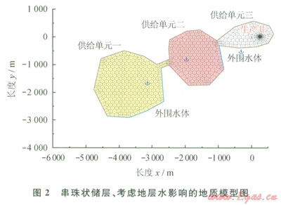 根據(jù)產(chǎn)量不穩(wěn)定分析方法的原理,采用Topaze生產(chǎn)分析軟件,開(kāi)展了以精細(xì)刻畫(huà)地質(zhì)模型、數(shù)值求解等方面的研究,建立考慮地層水侵影響的串珠狀儲(chǔ)層模型,表征復(fù)雜儲(chǔ)集體、地層水侵影響等;并進(jìn)行了理論模擬分析,檢驗(yàn)該方法識(shí)別多儲(chǔ)集體、地層水侵等方面的特征。