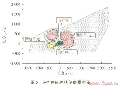 綜合地質(zhì)、生產(chǎn)動(dòng)態(tài)以及典型曲線特征分析,診斷S47井裂縫系統(tǒng)存在3個(gè)儲(chǔ)集體,可以采用串珠狀儲(chǔ)層模型進(jìn)行動(dòng)態(tài)儲(chǔ)量計(jì)算分析。