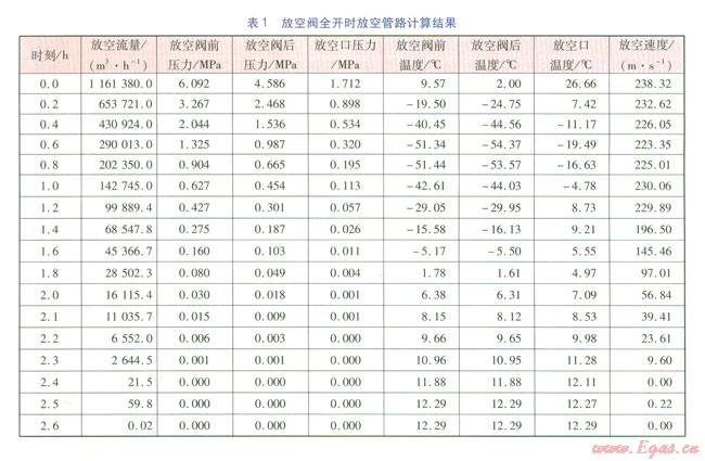 根據(jù)放空模型,建立動態(tài)腳本文件。在0時刻截斷閥門l和截斷閥門2關(guān)閉,逐步開啟放空閥,放空口直徑為