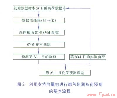 利用支持向量機(jī)進(jìn)行燃?xì)舛唐谪?fù)荷預(yù)測(cè)的基本流程見圖2。