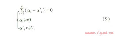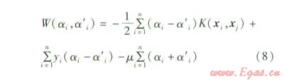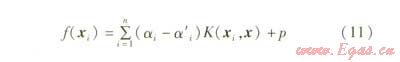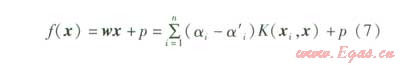 根據(jù)支持向理機(jī)理論,該非線性函數(shù)關(guān)系可以用支持向量機(jī)對(duì)前i-1天實(shí)測(cè)數(shù)據(jù)的學(xué)習(xí)來獲得,其回歸計(jì)算公式為: