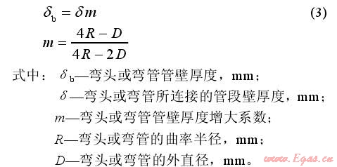 彎頭和彎管的管壁厚度根據《輸氣管道工程設計規(guī)范》(GB50251—2003)中公式(3)計算: