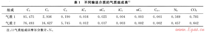 以4種不同組成的天然氣來分析滿足管道運(yùn)行條件下的氣質(zhì)組成對減壓波特性的影響,其組成如表2所示。