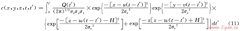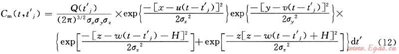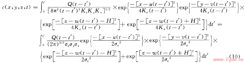 t’≠t當(dāng)時(shí),即泄漏源不是連續(xù)源也非瞬時(shí)源時(shí),此時(shí),上式中的Q(t-t’)應(yīng)取泄漏源Q(t’),則非連續(xù)源非穩(wěn)態(tài)泄漏擴(kuò)散模型計(jì)算式應(yīng)修正為: