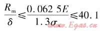 在計(jì)算極限狀態(tài)應(yīng)力時,當(dāng)管道最大軸向應(yīng)力不超過極限狀態(tài)應(yīng)力,錨固段的直管段就不會發(fā)生局部屈曲。管道的極限狀態(tài)應(yīng)力與臨界徑厚比Rm/δ有關(guān),當(dāng)管徑確定,鋼管的壁厚越薄,越容易發(fā)生局部屈曲。管道最大軸向應(yīng)力的極限狀態(tài)為: