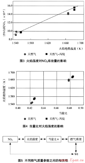 ——N0x的形成量決定于燃燒過程的最高溫度和可用的02量。即,燃氣的組分變化后,N0x的形成受最高溫度和空/燃比變化的影響。