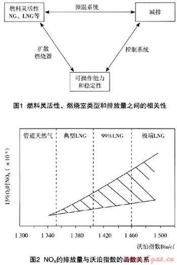 為使燃燒器適應燃氣質量的變化,在工業(yè)設備上也可安裝控制系統(tǒng),例如安裝在燃氣輪機上的就比常規(guī)的燃燒器系統(tǒng)要復雜。而且雖有控制系統(tǒng),排放情況仍有些變化。例如國外一些新型的干式低NOx排放(DLN)或干式低排放(DLE)燃燒室,對燃氣組分變化的允許范圍均很窄。