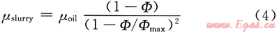 式中μoil為油相黏度,Pa·s;Φ為含水率;Φmax為最大填充系數(shù)。