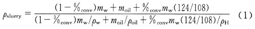 式中ρslurry、ρw、ρoil、ρH分別為天然氣水合物漿液、乳狀液中水、乳狀液中油、天然氣水合物的密度,g/cm3;%covy為水生成天然氣水合物的轉(zhuǎn)換率;mw、moil分別為乳狀液中水、油的質(zhì)量,g。