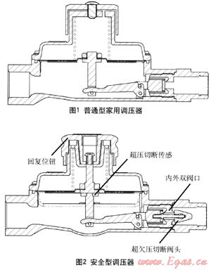 這種帶有安全保護功能的家用安全型調(diào)壓器與現(xiàn)有的戶用燃氣調(diào)壓器技術相比,新研發(fā)的安全型調(diào)壓器具有結構簡單合理、使用安裝方便、制作成本低廉、安全性能可靠等優(yōu)點: