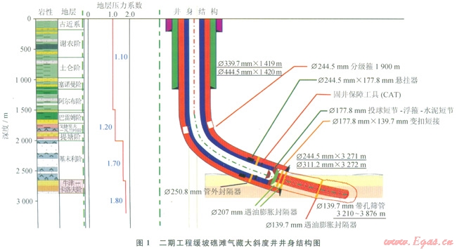 阿姆河右岸鉆遇地層具有“高壓淺層次生氣藏、高壓鹽水層、高壓目的層、高產(chǎn)儲(chǔ)層、巨厚鹽膏巖”等“四高一厚”的特征,嚴(yán)重影響高效、安全鉆井(前蘇聯(lián)在此鉆井期問事故頻發(fā),鉆井周期長(zhǎng),工程報(bào)廢率高達(dá)30%)。同時(shí),為了實(shí)現(xiàn)稀井高產(chǎn)、高效開發(fā)的目的,需要大規(guī)模實(shí)施大斜度井整體開發(fā),造斜增斜段均在鹽膏巖中,對(duì)井眼軌跡控制提出了更高要求。①在設(shè)計(jì)階段,地質(zhì)考慮工程施工難度,盡可能避開淺層走滑斷層、次生人工氣藏區(qū)及高壓鹽水層等非目的層復(fù)雜帶,根據(jù)地質(zhì)特征,共同確定井身結(jié)構(gòu)和井眼軌跡;工程考慮地質(zhì)和開發(fā)需要,在儲(chǔ)層變化大的地區(qū),先鉆導(dǎo)眼,搞清儲(chǔ)層分布,然后再側(cè)鉆確保鉆探效果,完井滿足后期生產(chǎn)作業(yè)的需要。②在實(shí)施階段,非目的層鉆進(jìn)期問,地質(zhì)要為工程服務(wù),做好層位預(yù)測(cè)、卡準(zhǔn)中完井深、特殊巖性預(yù)報(bào)、壓力預(yù)測(cè)等,規(guī)避鉆完井風(fēng)險(xiǎn),目的層鉆進(jìn)期問,丁程為油氣發(fā)現(xiàn)、安全作業(yè)服務(wù),尤其是精細(xì)控壓、地質(zhì)研究、人斜度井水平井軌跡控制、儲(chǔ)層保護(hù),確保鉆井目的實(shí)現(xiàn)。尤其是強(qiáng)化隨鉆分析,實(shí)時(shí)跟蹤,及時(shí)優(yōu)化調(diào)整,重點(diǎn)工序和關(guān)鍵環(huán)節(jié)地質(zhì)工程駐井現(xiàn)場(chǎng)辦公,及時(shí)決策,確保優(yōu)質(zhì)安全。通過實(shí)施地質(zhì)工程一體化,鉆井成功率為100%,大斜度井(見圖l)、水平井全部獲得高產(chǎn),單井無阻流量900×l04~l500×104m3/d,為高效開發(fā)奠定了堅(jiān)實(shí)的基礎(chǔ)。