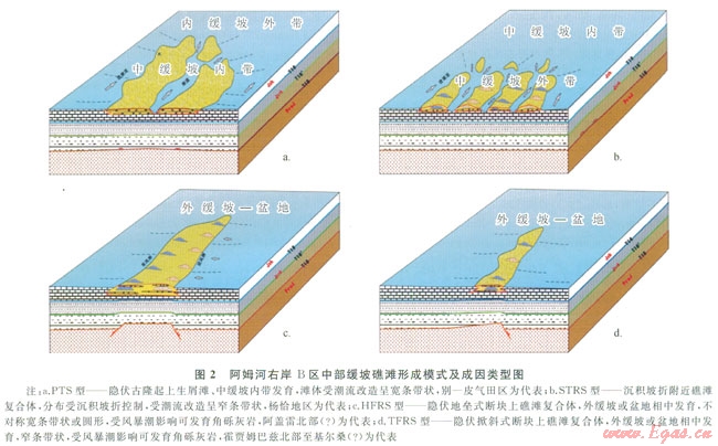 豐富并發(fā)展了含鹽盆地碳酸鹽巖油氣成藏理論,極大地拓展了阿姆河右岸及盆地的勘探開發(fā)領(lǐng)域[2];突破了傳統(tǒng)的堤礁相認(rèn)識(shí),確定了SAM氣田為臺(tái)內(nèi)灘多層疊合氣藏,對(duì)氣田開發(fā)潛力評(píng)價(jià)及開發(fā)方式影響深遠(yuǎn);“塑性滑脫,雙重構(gòu)造模式”新認(rèn)識(shí),將B區(qū)中部“分散式斷塊氣出”演變?yōu)?ldquo;大型整裝氣出”,探明儲(chǔ)量增加l倍[3-4](見圖2)。