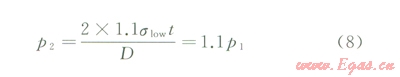 同樣,根據(jù)99%的可靠度,當試壓的等效應力達到slow時,實際鋼管可承受的環(huán)向應力為1.125slow,小數(shù)圓整后為1.1slow,由此對應的強度試壓壓力P2計算公式為: