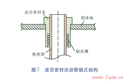 采用端面填料函密封的活動(dòng)管箱式結(jié)構(gòu)時(shí),一組管箱的制造安裝費(fèi)用為7.64×104元。采用迷宮密封活動(dòng)管箱式結(jié)構(gòu)時(shí),一組管箱的制造安裝費(fèi)用為13.52×104元。前者的使用壽命為l0~l2個(gè)月,后者的使用壽命為6年以上。因此,在滿足使用壽命的前提下,采用迷宮密封活動(dòng)管箱式結(jié)構(gòu)的空氣預(yù)熱器的技術(shù)經(jīng)濟(jì)性可以接受。