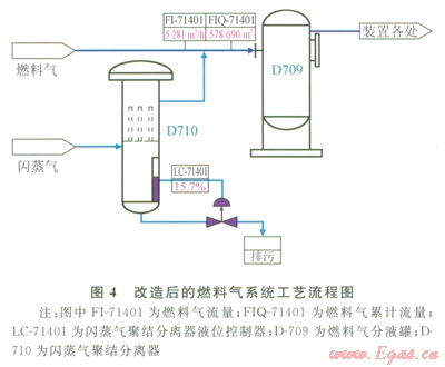 通過(guò)以上分析,閃蒸氣作為燃料氣并入燃料氣系統(tǒng)是可行的,但是為了避免燃料氣系統(tǒng)有大的波動(dòng),必須在工藝上改造優(yōu)化。