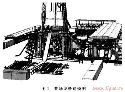 仿真平臺根據(jù)井場設(shè)備實物照片、圖紙和材質(zhì)紋理貼圖建立三維模型。本系統(tǒng)主要采用3DS Max建模,模型包括井場鉆井配套設(shè)備,主要有井架、井口、鉆具、頂驅(qū)、游車、大繩、絞車、轉(zhuǎn)盤、泥漿泵,循環(huán)罐、柴油機,發(fā)電機等[4];還包括搶險滅火設(shè)備,主要有遙感測溫儀、有毒氣體檢測儀、水炮、雪炮、水泵機組、水力噴砂切割機、鏈鋸切割機、重吊等;還包括穿戴防毒面具和高溫防火服的角色模型。