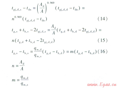 由式(14)~(16)計(jì)算出的供、回水溫度tg、th,s才是所需要的設(shè)計(jì)供回水溫度。在地板實(shí)際散熱面積條件下,將式(10)中的tg,d替換成tg,s,將th,d替換成th,s,將tpj,d,d替換成tpj,d,s,并由式(14)~(16)整理得到地板實(shí)際散熱面積及實(shí)際室外溫度條件下的供回水溫度調(diào)節(jié)公式: