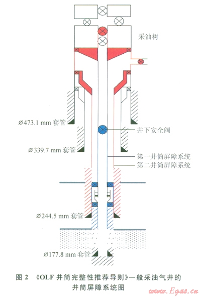 2)鑒于“深水地平線(xiàn)事件”教訓(xùn)和近年來(lái)環(huán)空帶壓的研究,《OLF井筒完整性推薦指南》將一般采油氣井的井筒屏障系統(tǒng)的第一安全屏障延伸到尾管部分,即尾管掛及尾管封隔器、尾管套管及固井,設(shè)置了多重屏障。