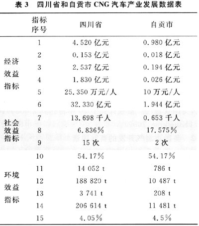 筆者根據(jù)本課題研究收集到的2007年自貢市和四川省數(shù)據(jù)為基礎(chǔ),以四川省為評(píng)價(jià)參照對(duì)象,對(duì)自貢市CNG汽車(chē)產(chǎn)業(yè)發(fā)展的綜合效益進(jìn)行評(píng)價(jià)。