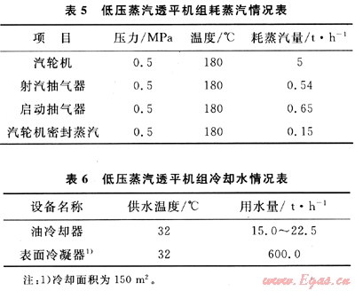 經(jīng)咨詢國內(nèi)某低壓蒸汽透平制造廠商,采用凝汽式透平驅(qū)動1臺循環(huán)水泵的消耗如表5、6所示。