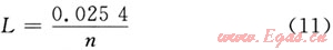 用n表示每英寸有n個孔,則有:nL=0.0254m。