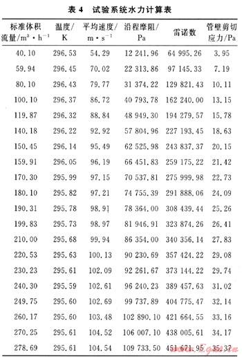 在進行減阻劑測試之前,首先要進行空白管道的水力分析。空氣由壓縮機壓縮到0.8MPa后進入測試管道,保證壓縮機出口壓力pi不變,標準體積流量Qg調(diào)節(jié)范圍為40~280m3/h,經(jīng)測量、計算得到一組數(shù)據(jù)如表4所示。