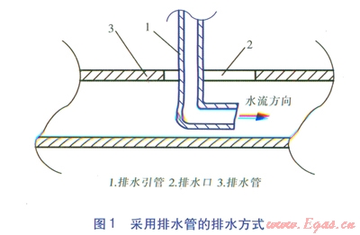 在原來設(shè)計(jì)需開挖排水溝的位置,敷設(shè)排水管代替排水溝。在對(duì)應(yīng)排水點(diǎn)位置的排水管上開設(shè)排水口,用排水引管將排水引入排水口(見圖l)。排水口應(yīng)大小合適,不能太小,以便觀測(cè)排水引管排出水的流量、顏色。排水引管末端應(yīng)采用彎管形式(見圖l),以便引導(dǎo)帶壓熱水按指定方向排放,避免熱水濺出燙人。這種改進(jìn)措施不僅施工方便,還杜絕了排水溝向電纜溝的滲流現(xiàn)象,更杜絕了敞開式排水溝引起的站內(nèi)空氣相對(duì)濕度過大問題。