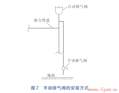 在原有自動(dòng)排氣閥的基礎(chǔ)上,增設(shè)一個(gè)手動(dòng)排氣閥,具體安裝方式見圖2。在自動(dòng)排氣閥前的排氣管引出一根支管至地面附近,在支管末端安裝一個(gè)手動(dòng)排氣閥。在換熱機(jī)組啟動(dòng)前,運(yùn)行人員打開手動(dòng)排氣閥,快速排除管道內(nèi)的不凝性氣體,直至供回水壓力穩(wěn)定且僅有水而無氣體排出時(shí),再關(guān)閉手動(dòng)排氣閥。此后,可完全依靠自動(dòng)排氣閥排氣,這樣即可確保換熱機(jī)組的安全穩(wěn)定運(yùn)行。