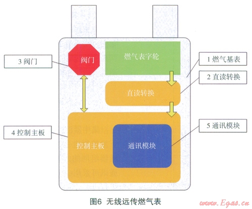 無線遠(yuǎn)傳燃?xì)獗硎窃谄胀矣闷つと細(xì)獗砩霞友b光電直讀計(jì)數(shù)器、電子控制模塊、無線通訊模塊等電子模塊組成的,如圖6所示,無線遠(yuǎn)傳燃?xì)獗戆惭b在用戶家中,燃?xì)夤疽詿o線手持機(jī)或者采集器為無線數(shù)據(jù)傳輸媒介,對(duì)燃?xì)獗韺?shí)行戶外實(shí)時(shí)抄表和遠(yuǎn)程閥門控制。主要功能包括以下幾點(diǎn):