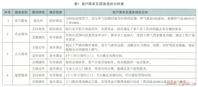 根據(jù)燃?xì)馄髽I(yè)的資源現(xiàn)狀,各個服務(wù)項(xiàng)目滿足客戶需求的程度不一樣??蓪⑿枨蟮臐M足程度分為較好滿足、基本滿足、有待提高3個梯度。
