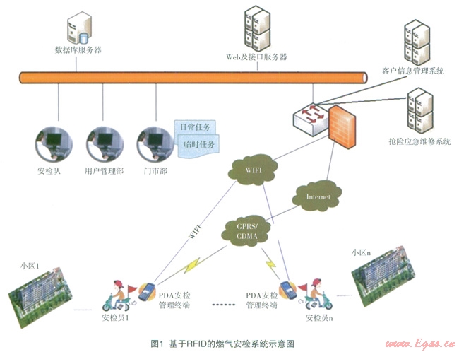 通過采用RFID技術(shù)并結(jié)合PDA安檢管理終端技術(shù),可以確保安檢人員入戶安檢、避免漏檢,實(shí)現(xiàn)對(duì)燃?xì)獍矙z過程的精細(xì)化管理。通過使用無線通信技術(shù),安檢結(jié)果能夠及時(shí)傳送到燃?xì)夤?,避免手工重?fù)錄入安檢結(jié)果的繁瑣及錯(cuò)誤。通過與工單管理系統(tǒng)的結(jié)合,可確保隱患能夠得到燃?xì)夤緭岆U(xiǎn)維修部門及時(shí)處理。