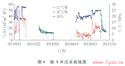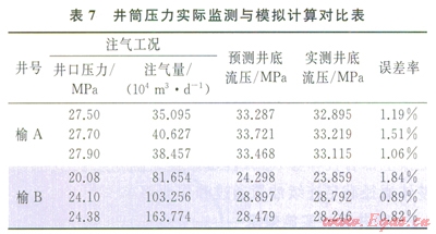 榆林南注采試驗(yàn)井榆A和榆B井注氣過(guò)程中,井筒壓力損失分析見(jiàn)表7所示,計(jì)算壓力損失與實(shí)測(cè)的誤差小于2%?,F(xiàn)場(chǎng)試驗(yàn)表明,室內(nèi)節(jié)點(diǎn)分析軟件模擬計(jì)算結(jié)果符合氣井實(shí)際運(yùn)行工況。