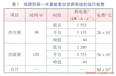 ①地源熱泵一水蓄能復(fù)合空調(diào)系統(tǒng)運行電費