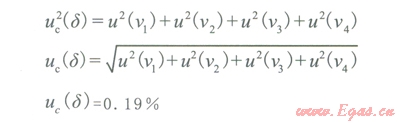 合成標準不確定度的計算: