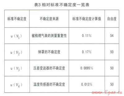 4.4 相對標準不確定度一覽表(見表3)