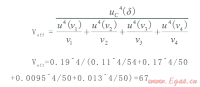 合成標準不確定度的有效自由度Veff: