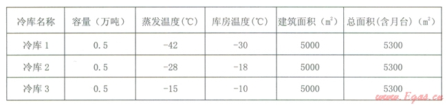 為便于計(jì)算,本文以總?cè)萘繛?span lang="EN-US">1.5萬(wàn)噸的冷庫(kù)為例進(jìn)行具體計(jì)算,并將此冷庫(kù)設(shè)計(jì)成三座庫(kù)容量均為5000噸庫(kù)房溫度分別為30℃、-l8℃、-l0℃的冷庫(kù)。根據(jù)蒸發(fā)溫度與庫(kù)房溫度的關(guān)系,三座冷庫(kù)的蒸發(fā)溫度分別為-42℃、-28℃和-l5℃。其基本設(shè)計(jì)參數(shù)如表l。