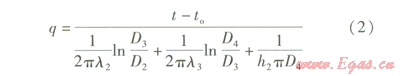 式中l2——保溫層材料熱導(dǎo)率,W/(m·K)