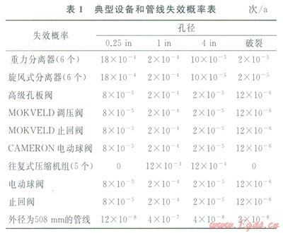 根據(jù)API 581標準以及榆林站1999—2012年的失效統(tǒng)計數(shù)據(jù)[22],考慮管理修正系數(shù),一線榆林壓氣站內(nèi)管線和典型沒備失效概率確定結(jié)果如表1所示。