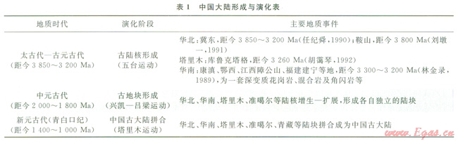 中國(guó)大陸的形成及演化情況如表l所示。