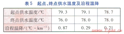 筆者獲取了3組測(cè)試管段起點(diǎn)、終點(diǎn)的供水溫度,以計(jì)算供水沿程溫降,供水溫度及沿程溫降見表5。由表5可知,隨著供水溫度的提高,供水沿程溫降呈上升趨勢(shì)。