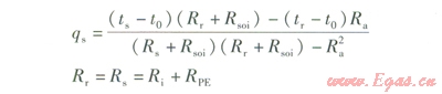忽略工作鋼管熱阻、工作鋼管內(nèi)表面熱阻,供水管單位長(zhǎng)度熱損失qs的計(jì)算式為[1-2]: