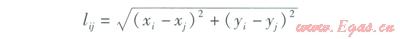 文獻[7—8]認為燃氣管網(wǎng)造價近似為管長的線性函數(shù),基于這種理論,當量費用長度lw,ij的計算式為: