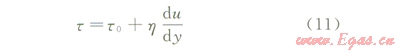 對(duì)水合物漿的流變性研究發(fā)現(xiàn),水合物漿在低濃度下可視為牛頓流體,而在高濃度下,則表現(xiàn)為非牛頓流體,較為常用的表征模型為Bingham模型[10]:
