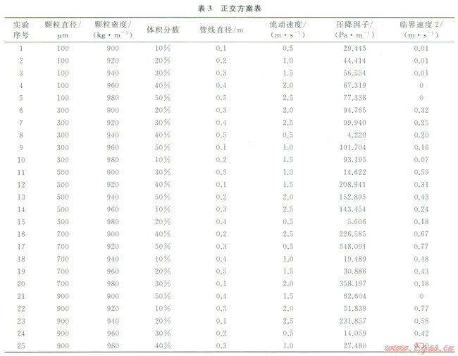 此外,經(jīng)過(guò)對(duì)比可知,普遍常識(shí)所認(rèn)為的對(duì)流動(dòng)狀態(tài)有較大影響的固相顆粒體積分?jǐn)?shù)卻是對(duì)“臨界速度2”影響最小的參數(shù),分析原因,筆者認(rèn)為固相顆粒體積分?jǐn)?shù)在較低濃度時(shí)(小于35%),對(duì)“臨界速度2”影響不大,而只有在較高濃度,尤其是濃度接近最大填充率的時(shí)候,才會(huì)對(duì)“臨界速度2”有顯著影響。