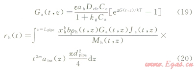 美國科羅拉多礦業(yè)大學(xué)水合物研究中心針對水合物的生成開發(fā)出了OLGA模擬水合物的計算模塊(CMSHYK),并將其成功地應(yīng)用于管道多相流動過程中水合物的生長情況[42]。其主要模型如式(17)。Kinnari等[43]運(yùn)用該模型對管道中水合物生成分析發(fā)現(xiàn),該模型中動力學(xué)控制水合物生長的因素太大,與實(shí)際過程不相符。即