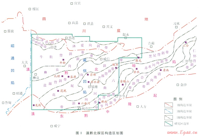滇黔北探區(qū)地處三省交會(huì)的云南昭通、貴州畢節(jié)、四川宜賓和瀘州區(qū)域,大地構(gòu)造上屬于揚(yáng)子地塊構(gòu)造域西南邊緣的滇黔北坳陷,主體為威信凹陷的中兩部區(qū)域(圖1),其北側(cè)為四川盆地(海相古生界構(gòu)造臺(tái)坳)。