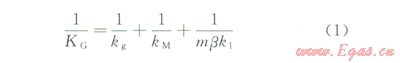 為膜阻力;為液相側(cè)阻力,m為相平衡常數(shù),b為化學(xué)增強因子,K1為液相傳質(zhì)系數(shù)。