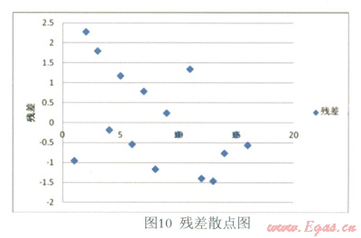 回歸方程為輸差的估算方程,實際輸差以其為核心上下略有波動,故需求出其波動極限。觀察圖10可以發(fā)現(xiàn),絕火多數(shù)殘差都落在(-1.5,+1.5)之間。因此可知,輸差的置倍度87.5%的置倍區(qū)間為(y-1.5,y+1.5)所以當(dāng)輸差位于(y-1.5,y+1.5)之間時,為正常;當(dāng)輸差位于(y-1.5,y+1.5)之外,時需關(guān)注。